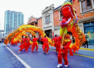 国家级非物质文化遗产代表性项目“浦东绕龙灯”表演亮相上海张园。新华社发